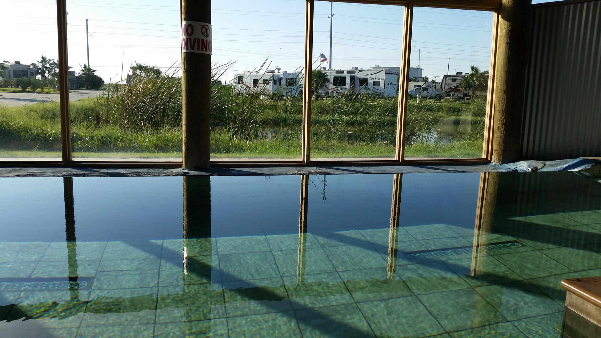 I really had a great stay here. It's a resort that is showing some age, but is still in good shape and has a lot of fun to offer. It's about 15 miles from downtown Galveston, so it's away from any hustle and bustle. A lovely and quiet location. Not directly on the beach but very close, they do offer access to an estuary. Sites are concrete and level. Utilities work well, including wifi and cable. Office can be very busy (book in advance) but they are very friendly. I would likely come back for a longer stay next time around.